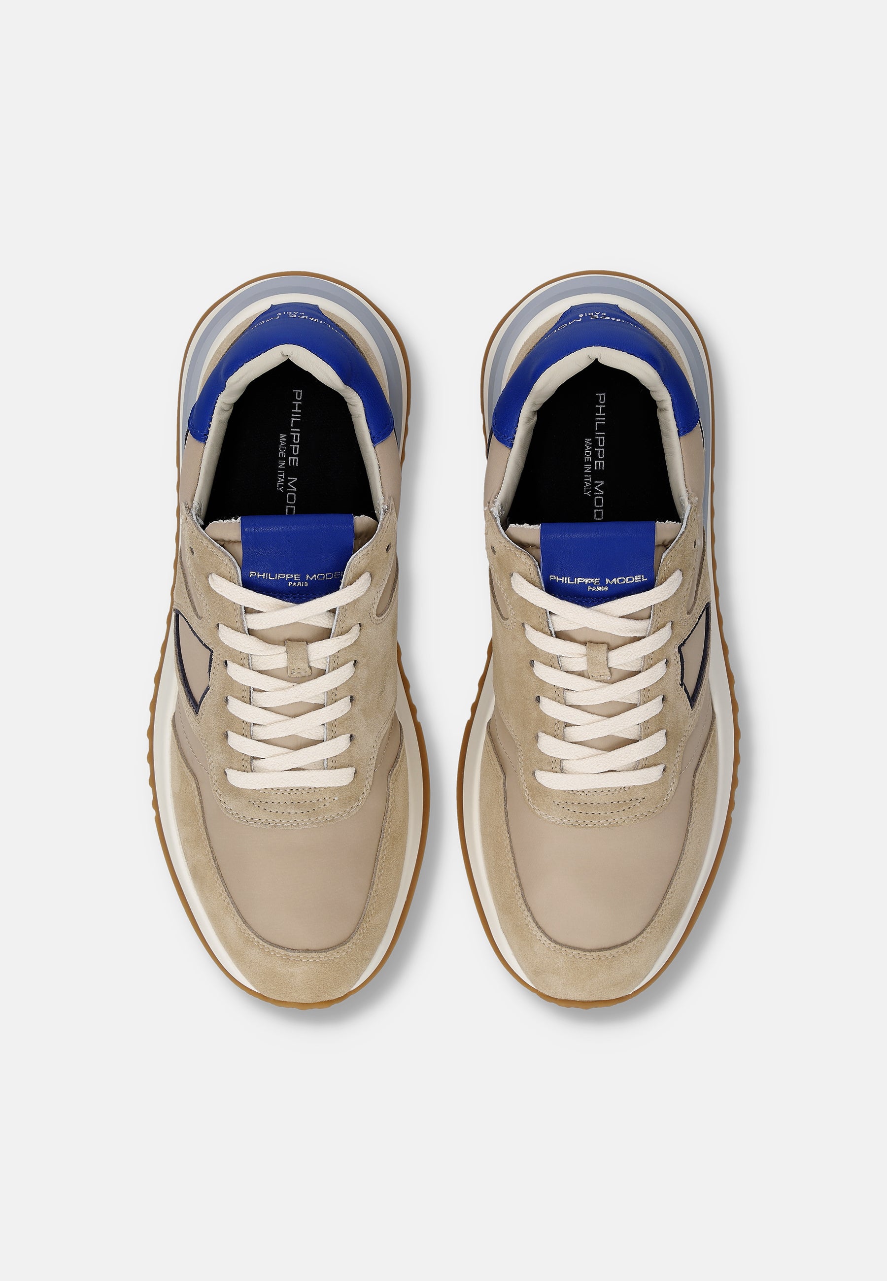 Le linee iconiche delle sneaker vintage incontrano stile e materiali up to date. Tropez 2.1 con tomaia sabbia in tessuto tecnico e suede è arricchita da dettagli in pelle a contrasto. La suola in gomma ultra leggera con fresature artigianali presenta una linea bold con inserto tridimensionale a contrasto, mentre la tomaia con costruzione Strobel e l'interno in Ortholite garantiscono il massimo confort.