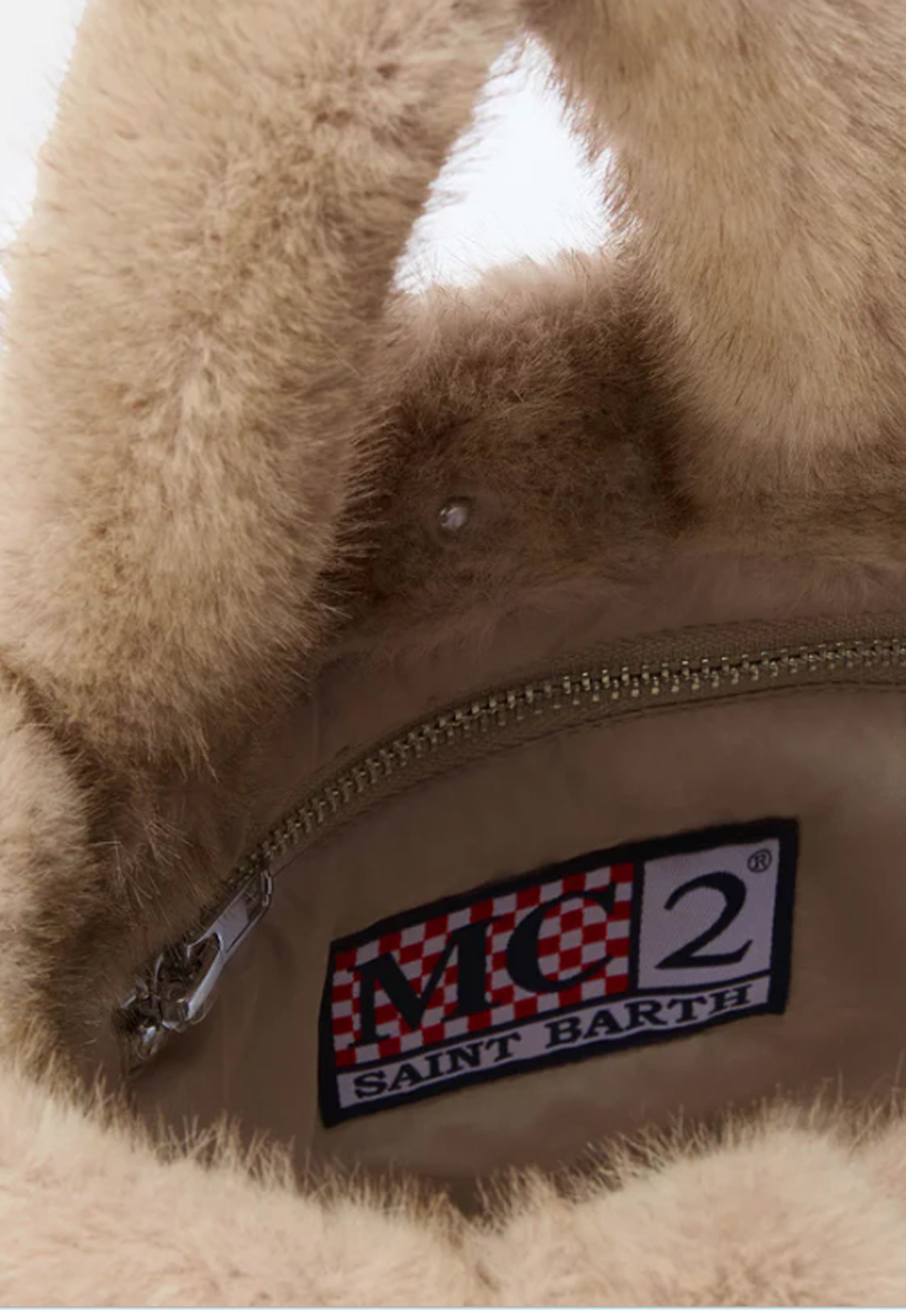 La Vanity Mini Soft in faux fur beige offre un’eleganza soffice e informale per ogni occasione.