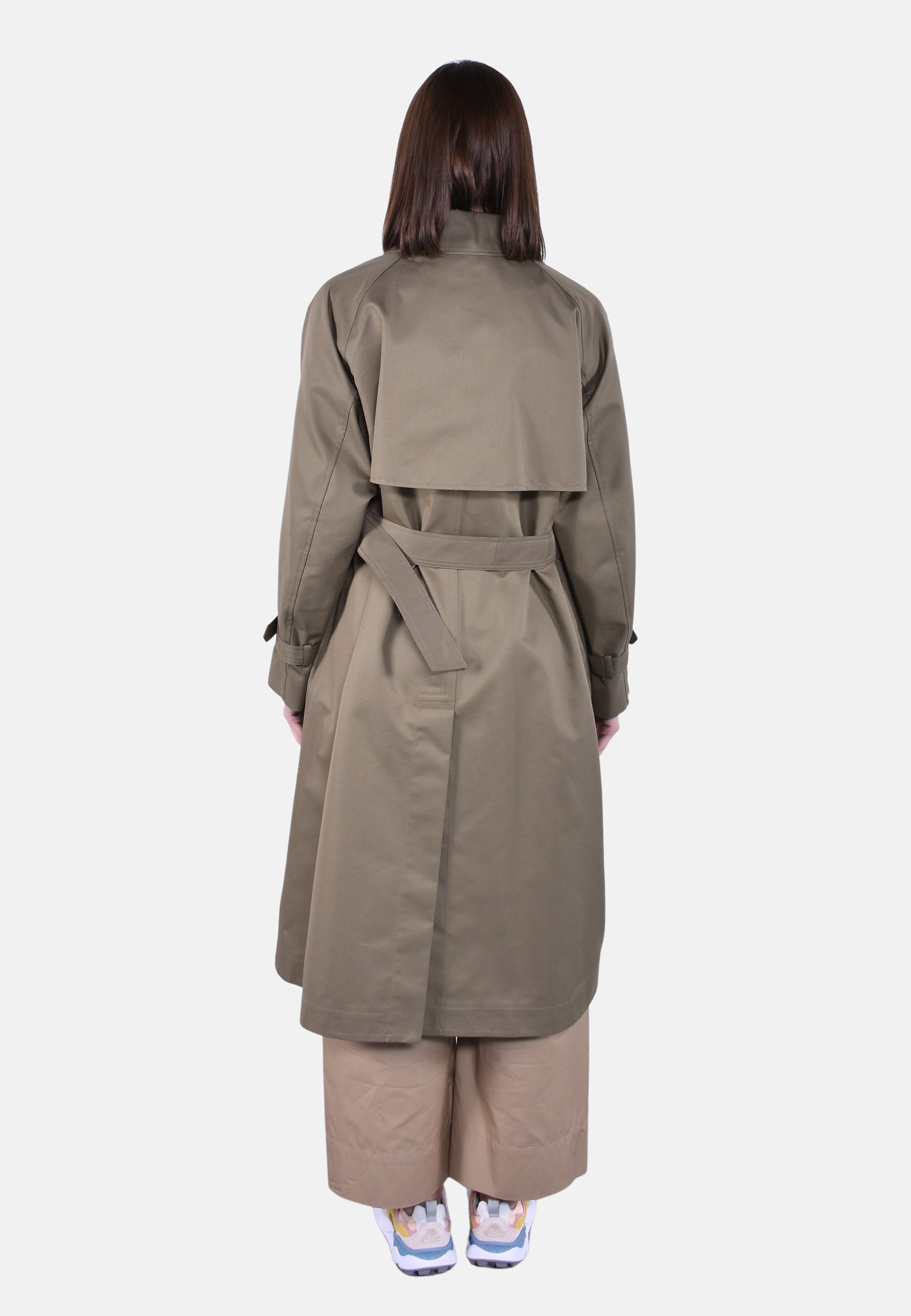 Trench midi reversibile con mantellina e spacco centrale sul retro.