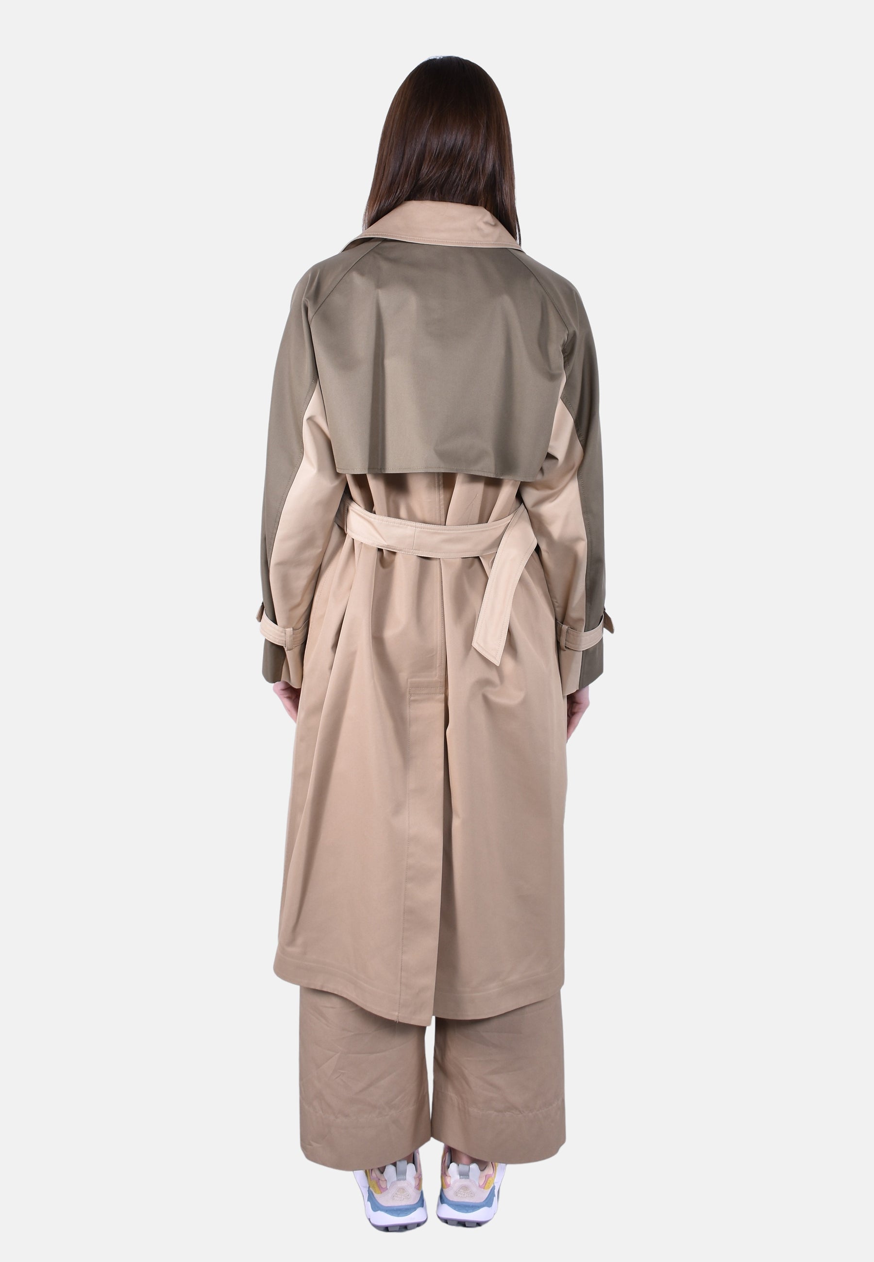 Trench midi reversibile con mantellina e spacco centrale sul retro.