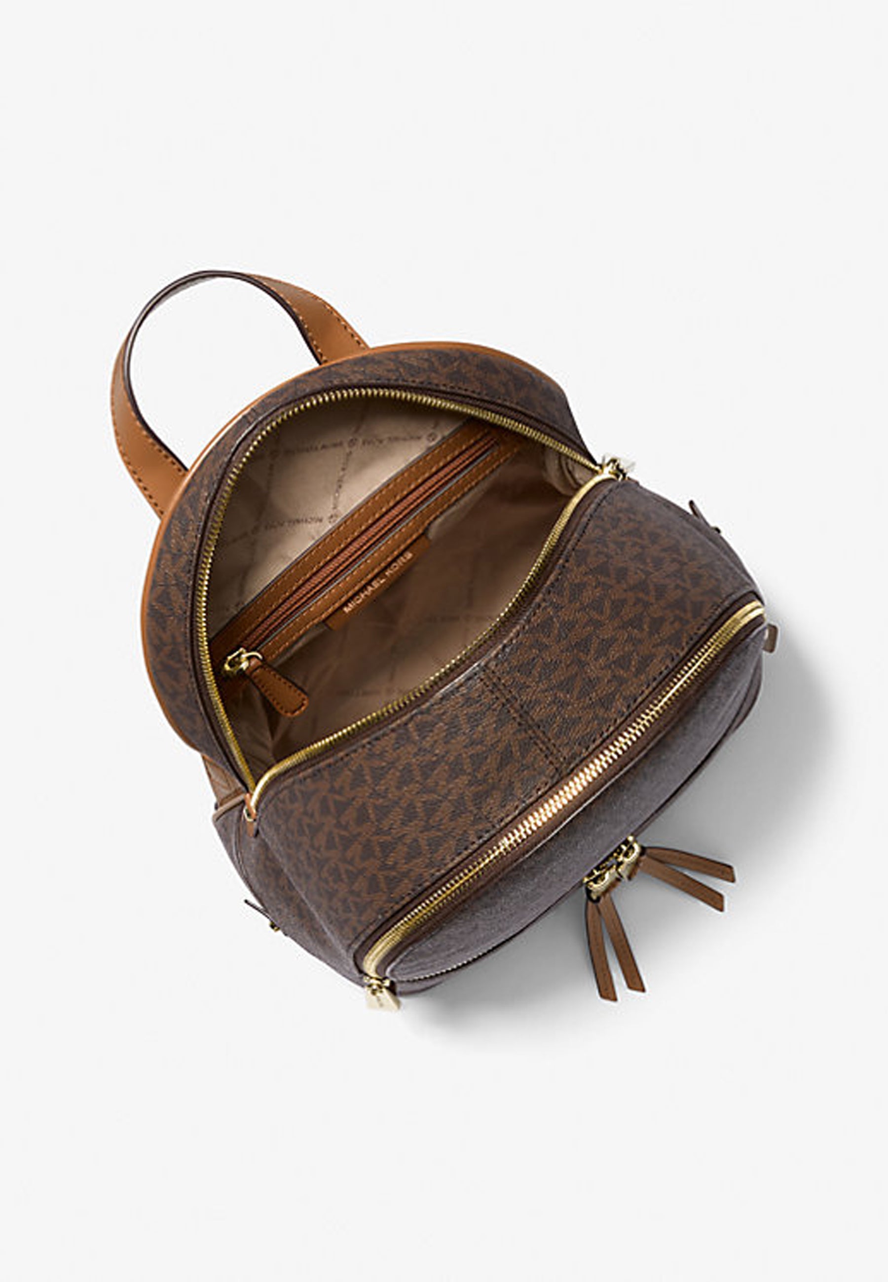 Stile casual e lusso si incontrano nel nostro zaino Rhea, che reinterpreta l'idea di accessorio metropolitano. Amiamo la combinazione della stampa con il logo e la luminosità dei dettagli in metallo. Con le sue tante tasche e i morbidi spallacci, la femminilità si fonde con un design resistente.